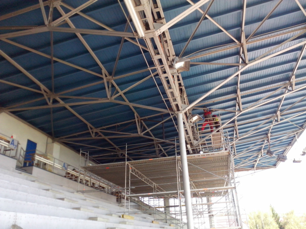 Ocelové konstrukce, zábradlí, mříže, stadion MFK Karviná, lávky, mostní konstrukce, Ocelové konstrukce přístřešku, skladové haly, aj. – subdodávky pro firmy: